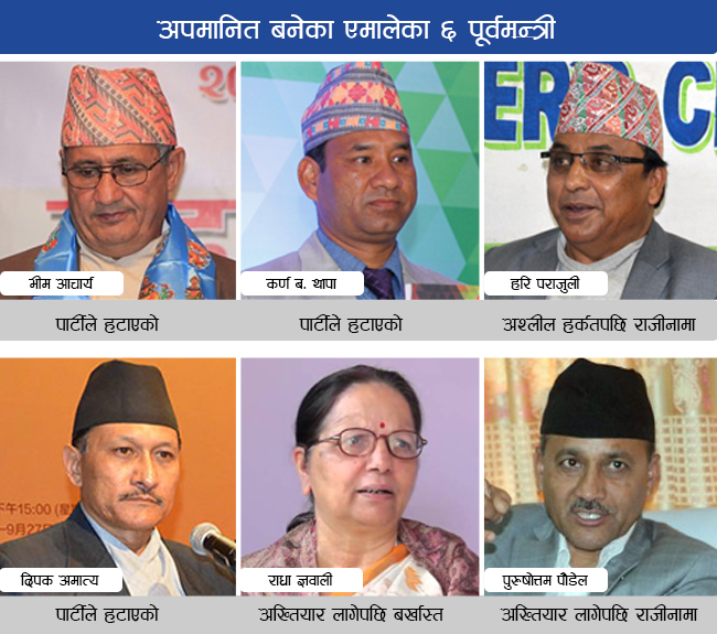 त्यसैगरी एमालेका तर्फबाट युवा तथा खेलकुद मन्त्री बनेका पुरुषोत्तम पौडेल पनि अख्तियारको दबावमा सिंहदरबार छाड्न बाध्य भएका छन् ।